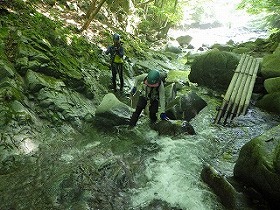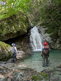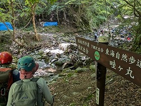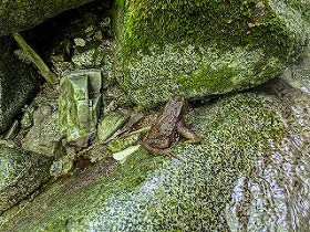 | 西丹沢・西沢WW(本棚下棚) 2025年7月 ●2025年7月10日(金) 晴れ T、M、TIさん 合計3名 ・自宅4:30→西丹沢ビジターセンターP6/7:17-下棚10/10:15-本棚11/12:00-P13/14→自宅16:00 行動時間5:46 休憩1:26 4.9q 登り381m 下り383m ・最近、山に誘ってくれるTIさん。今回の狙いも貴重な花の撮影らしい。 登山靴を買ったので、涼しい山に行きたい気分だったが、行くのはウォーターウォーキングとの事。 なので20年以上たつ沢靴を引っ張り出し行ってきた。 以前、この辺の沢を登った頃とは明らかに異なる、最近の暑さだが、久々に涼しさを感じる日となった。 駐車場のキャパが小さいので早めに着いたが誰もいない。平日は路駐する程の車は無いようだ。 中川寄りの林にミニロックガーデンが有り、丹沢を構成する石の勉強になる。、 西沢を渡る橋の下から中川に入り、橋の上流側右岸から西沢へと進む。 程よい水の冷たさだ。西沢は横に畦が丸への登山道があり、何かと安心 花崗岩質の岩は、20年物のフェルト靴でも十分フリクションが効き快適。 が、沢スパッツを持ってこなかったので、荒めの真砂が靴に侵入、痛く、悔やまれた。 小さな岩場や釜、大きな堰堤を越え、花を撮影。TIさんのメインのお目当てには会えなかったが、 いろんな花、トカゲ、蛙、蝶、時折走る魚影を見ながら遡行。 ホタルブクロを撮影する際、ガラ場の不安定な石に足を取られTIさんと自分が転ぶ。 幸い大きなけがでは無かったが、脛をしたたか打つ。反射神経、判断力、筋力等々、色々衰えてるね。 コリャア−本気の沢登りに行くのは危ないなと思う。 懐かしの下棚に到着し滝の岩に触れてみる。古いボルトが見え、今も登られているようだ。 少し戻り奥の本棚に行く。滝には虹が出る程の水量。ちょっとだけ20年前の感慨に耽る。 ここで昼食。帰りは登山道で降りる。 下棚沢分岐に遊ぶ児童の集団に本日一番驚いた。 登山道とからみながら行く それでも沢なので楽しめる 小滝を越え 大きめの滝もあります。 ![]() 下棚 虹の本棚 本棚 ![]() イワタバコ ジャノヒゲ(リュウノヒゲ) ホタルブクロ ![]() ![]() 苔が元気 手のひらサイズのツチカエル ![]() 下棚分岐で水遊びする児童達! ![]() ●トレース。
