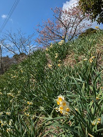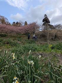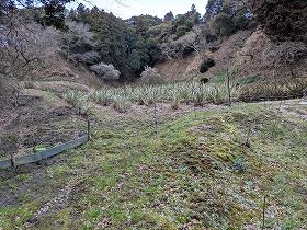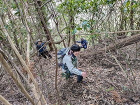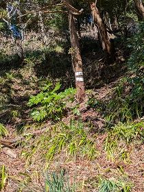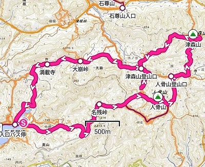 | 人骨山-津森山 2026年2月 ●2026年2月15日 晴れ H、K、T、M 4人 ・佐久間ダムP6:45/7:15-名残峠7:58-人骨山8:47/9:10-津森山9:59/11:03-牧場Cafe11:45/13:30-佐久間ダムP14:47 全時間7:31 休憩3:32 距離10.8q 登り456m 下り460m ・HさんとKさんと知り合ったのは2008年の穂高。 その後、時々山に同行する細く長ーい付き合いの山友です。 人骨山と言う怪しげな名に惹かれ、2年前に計画したが雨で流れ、再度計画。4人そろっての山はホントに久々だ。 高橋尚子さんたちの石碑立つ佐久間ダム駐車場で合流。 驚くほど水がないダムから、西に向かう。頼朝桜祭りの今は桜、スイセン、菜の花、梅、蝋梅など花盛りだ。 林道脇の樹木に札が目立つ、名前や動物名が書いて有るが何の為か良く解らない。 枝道が多く有り、地図アプリ見ながらでも、なかなか判りにくい。 いつの間にか北西の林道に入り、右側の屋根がつぶれた廃屋が有る先で、林道が消えて藪漕ぎとなる。 どうやらバリエーションルートに入ったらしい。(人骨山にヨバレタかと思ったが単なる道迷いだった) 強引に突破すると尾根状の急登になり藪が激減。崩れ気味の踏み跡を木潜りや棘に悩まされながら進む。 迷い込みそうな踏み跡等を過ぎると、樹林の隙間に人骨山が見えてきた。 路が少しましになり、傾斜が緩くなった辺で登山道に合流。 東へ戻る感じの登山道には綱引きの紐の様な、お助けロープが掛けてある。この先が人骨山山頂だった。 伝説のような怪しい感じはなく、狭いが展望は良い。 鋸山や海などが見える。暖かい為か遠くの方は雲が多く見えない。 休みなしだが、そのまま津森山に向かう。 正規の路?を戻ると、鞍部状の所で、分岐になる。小ピークへ登りに向かえば本来歩こうとしていた佐久間ダムからの路だ。 此処は北側の畑に降りる路に向かう。巨大なパイナップルの葉の様な物が植えてある畑を過ぎ、人骨山登山道入口で林道に合流。 地図アプリ見ながら津森山登山口に向かう。 民家の手前に津森山登山口があった。東に山路を行くとすぐに西に向きを変へ、これまた直ぐに津森山山頂に着いた。 まさに先程の民家の裏山です。 うまくいけば富士山やらが見えるようだが、雲は晴れずザンネン。ベンチで大休止する。 林道へ戻ればそのまま下山だが、一寸戻って牧場Cafeに寄らせてもらう。 牧場Cafeからは東南に人骨山が真近に見える。 数十年前に移住し、山羊の飼育とCafe運営されているご夫婦から、色々なお話を伺う。 其れによれば朝方見た廃屋は知人の家だったそうで、何度か藪を漕いで、行ったことがあるそうな、 地図で良く見ると、牧場Cafeから廃屋への路が書いてあり、古くからの生活路だったようだ。 朝、彷徨った藪地はバリエーションっと言うか、失われた路の一部だったのか! 西側の村人は、此の西側の小尾根を辿り人骨山に登っていたのかもしれない。 山羊のドツキアイや食事、生態などを伺った後、Cafeで美味しいケーキ、コーヒー、梅ジュース等を頂いた。 ゆっくりした後は花を見ながら下山。 久々に4人で来たので、おしゃべりが尽きず、時間が足りないぐらいの楽しい山だった。 再会を約束し解散。 我家は激混みの笑楽の湯で汗を流し、20時過ぎの金田ICになんとか潜り込み帰宅した。 ●牧場Cafeのご主人から聞いた話 ・林道わきの樹木の表示札は、くくり罠の仕掛けがしてある表示。やたら近づかないこと!(全国的に表示義務があるらしい) ・この辺は獣害が多く通年猟銃許可がでている! バリエーション注意! ・巨大なパイナップルの様な葉っぱ畑は生け花用の葉。この辺は栽培者多いらしい。後で調べるとニューサイランとの事。 桜祭りでスイセンもまだ有 黄色のスイセン 藪の先で踏後が出てきた ![]() 人骨山が近くなった 人骨山山頂 麓のニューサイラン畑 津森山山頂 津森山 展望地から 麓の桜 ![]() スイセンと桜と青空 牧場Cafeの山羊 チーズケーキ500円と梅ジュース200円 ![]() 表示札の下はくくり罠の仕掛有 菜の花と桜 ボート乗場りの先まで渇水の佐久間ダム ![]() ●トレース。 全体 牧場Cafeの南の小尾根越えれば廃屋はめちゃ近い! ![]()