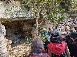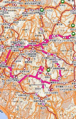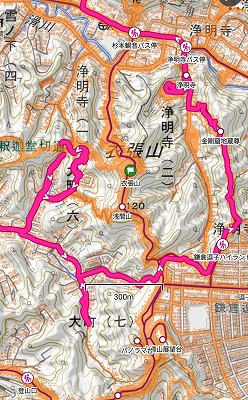 | 釈迦堂遺跡-巡礼古道 2026年3月 ●2026年3月5日 晴れ T、M 2人 ・鎌倉駅8:56-釈迦堂遺跡9:30/11:30-ふれあい公園12:00/12:30-巡礼古道-報国寺13:14/13:40-永福寺跡14:00 瑞泉寺14:15/:40-鎌倉宮-小町通り-鎌倉駅15:45 全時間6:48 休憩1:00 距離11.8q 登り219m 下り219m ●釈迦堂遺跡が期間限定で特別公開する。切通隧道の落石以降、アチコチ補強してるそうです。 切通隧道もそのうち公開されるかもしれない。 北条館と言われていたが、そうではなく、何らかの宗教施設があった遺跡だそうな。 やぐらと称する穴が沢山の鎌倉。此処にも沢山ありますが詳しい歴史的な解明はこれからだそうな。 ガイドツアーが大盛況で狭い道で説明したりすれ違ったりは、やや危険。 つかず離れず説明を聞きかじる。 黄金やぐらという名に惹かれ、一寸寄り道。 小川か側溝かと思った所だった。 道端の看板が無ければとうりすぎそうだ。往時はヒカリゴケがあったそうな黄金やぐらは、 今では、水たまりの洞穴。やや不気味。 戻るのも面倒なので、行った事のない巡礼古道にむかう。 此方からは300段ほどの階段を登り、浄明寺緑地のこども自然ふれあい公園に乗り上げる。 公園で園児の集団と共に昼食。ぽかぽか陽気で眠くなりそうだ。 衣張山への道を分け、鎌倉ハイランドから巡礼古道に入る。 一転して、誰にも会わず急斜面や倒木があり、あまり手が加えられていない路だ。 此方にも地蔵やぐらが有るが、誰もいないのでゆっくり出来ます。 報国寺の竹林、瑞泉寺の梅、小町通りの賑わいを眺め帰宅した。 釈迦堂遺跡の地蔵やぐら。大盛況 保養所跡の朽ちたコンクリ橋 釈迦堂切通し ![]() 浄明寺緑地のこども自然ふれあい森の花 土肥桜 モクレン トサミズキ ![]() 巡礼古道の地蔵やぐら 報国寺竹林 瑞泉寺の庭 ![]() ●トレース。 全体 拡大: 釈迦堂から巡礼峠 ![]()